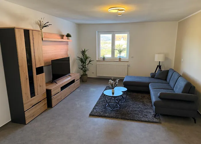 Disfruta de tus vacaciones en Wandersleben en Monteurswohnung 6 Schlafplaetze Wandersleben, un apartamento de 90 m^2. Ideal para quienes buscan una experiencia auténtica, está situado a una distancia de 4 km del Castillo de Wachsenburg y a 10 minutos en coche del Schloßleite. Los huéspedes pueden disfrutar del Wi-Fi.
